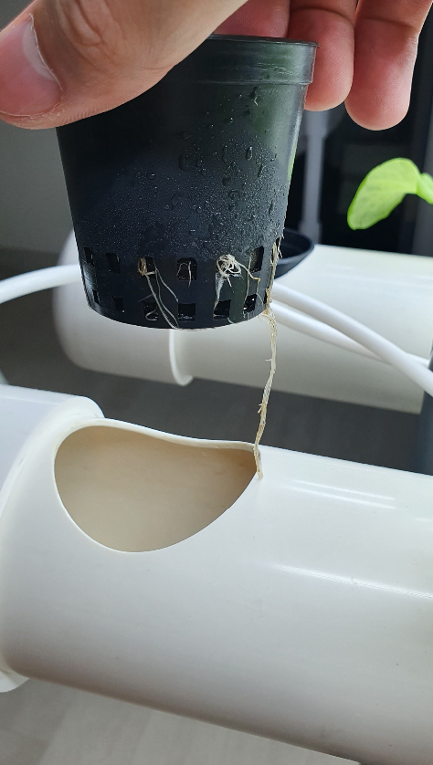 포트를 더 높이 꺼내고 싶었는데, 뿌리가 재배기 안쪽에 더 길게 나있어서 옆에 다른 포트의 뿌리와 엉켜있어서 함부로 더 꺼내기가 어려웠습니다.