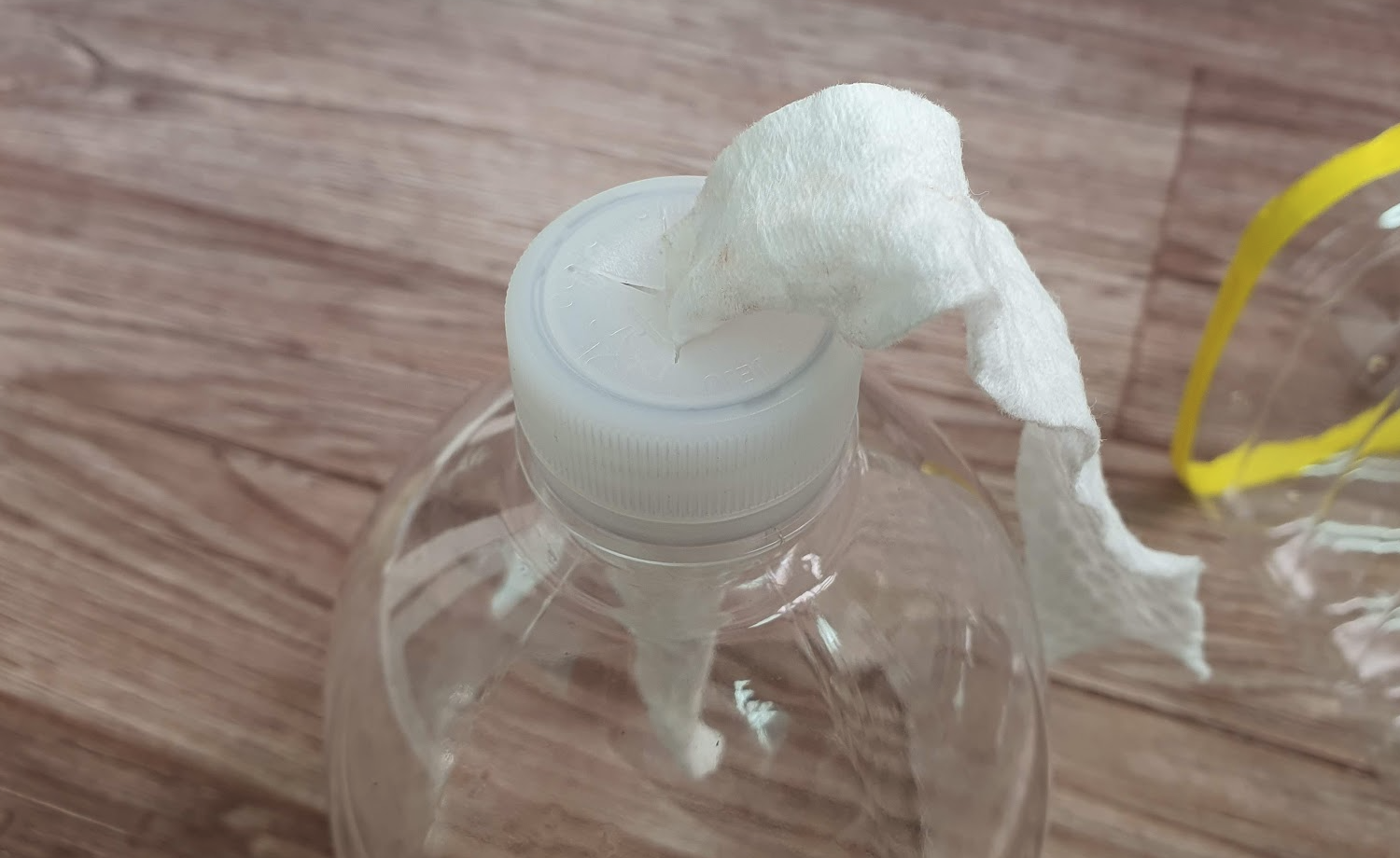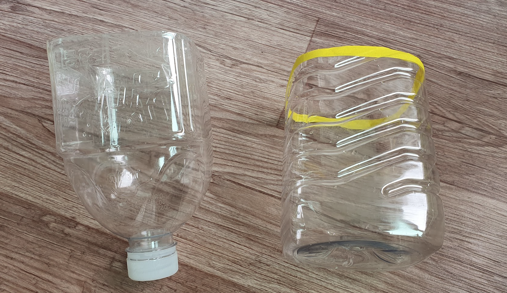 반으로 잘랐던 나머지 패트병과 함께 끼우면 이런 모습입니다.