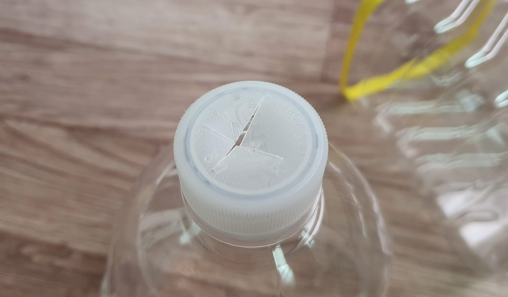 패트 병의 뚜껑에도 구멍을 냅니다.